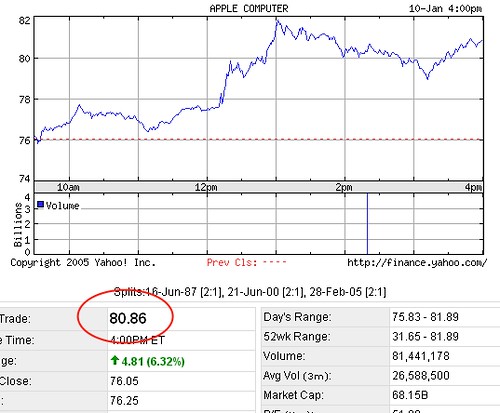 Ironic: the day Apple goes to Intel, it’s stock closes at 80.86 a share