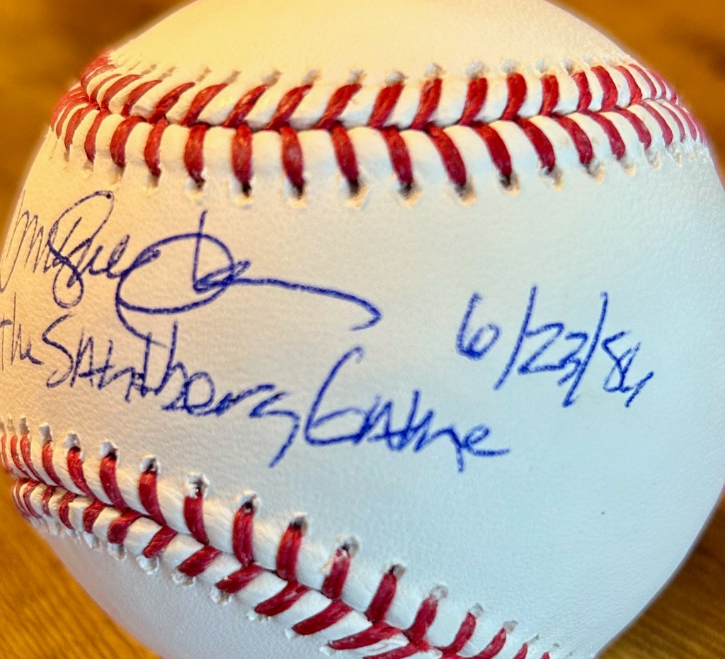 Running parallel to Sandberg’s professional career was the meteoric rise in forgeries of sports memorabilia. Despite this, I’ve seen very few Sandberg forgeries, especially compared to Michael Jordan, Mickey Mantle, Ted Williams and Joe Dimaggio. That said, there are forgeries on the market. Education is the best way to protect yourself from investing in a bad piece.